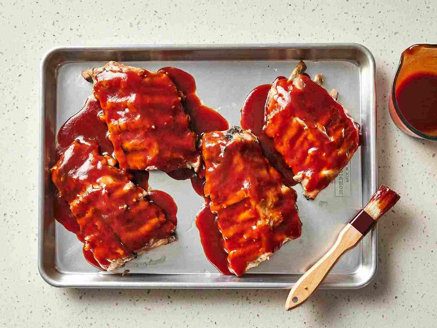 - Step 6:Bake ribs in the preheated oven until sauce caramelizes and sticks to meat, 10 to 15 minutes. Dotdash Meredith Food Studios